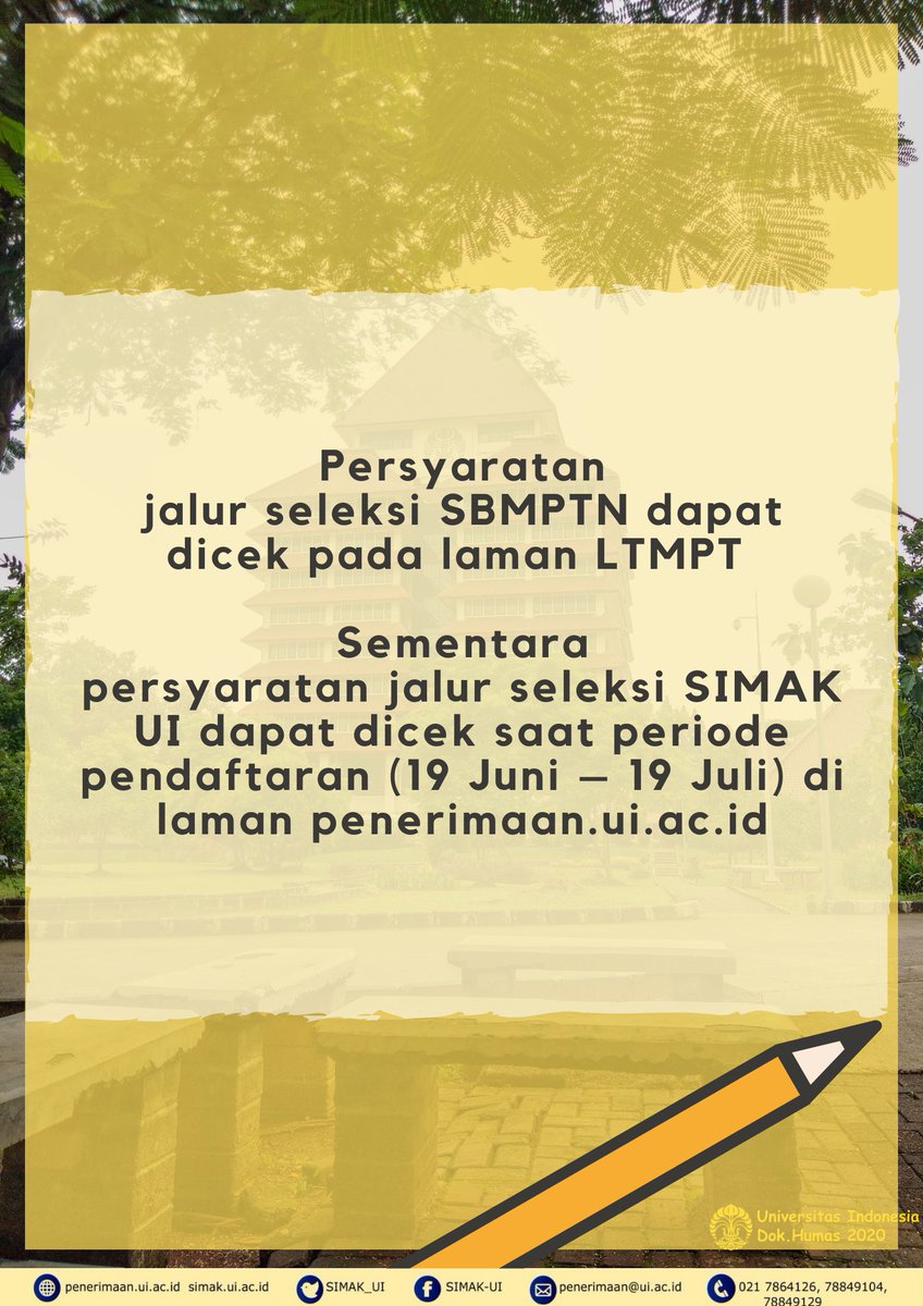 Sbmptn atau seleksi bersama masuk perguruan tinggi negeri merupakan salah satu jalur masuk ptn melalui jalur ujian tulis. Ui menerima mahasiswa baru baik melalui jalur snmptn undangan sbmptn ujian tulis dan seleksi mandiri ui. Uiacid pmb ui jenjang d3 dan s1 terdiri dari beberapa jalur masuk.