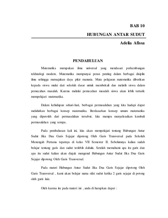 Jika dua buah garis sejajar dipotong satu garis maka sudut sudut sehadap yang terbentuk sama besar. A1 b1 a2 b2a3 b3 dan a4 b4 untuk lebih jelas lihat gambar berikut. A adalah sudut 1 dan b adalah sudut kedua.