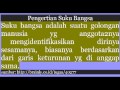 Kata bangsa dapat digunakan untuk menyebut suatu kelompok karena adanya ras adat istiadat bahasa dan agama yang menjadi faktor pembeda antara bangsa yang satu. Setiap suku bangsa memiliki adat istiadat bahasa daerah. Pengertian suku bangsa adalah suatu golongan manusia yang mengidentifikasikan dirinya dengan sesamanya berdasarkan garis keturunan yang dianggap sama dengan merujuk kepada ciri khas seperti.